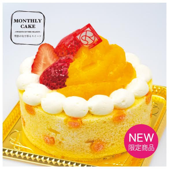 甘酸っぱい「温州みかん」をつかった、やさしい甘さのムースをスポンジで包み、オレンジと苺で色鮮やかに仕上げました。