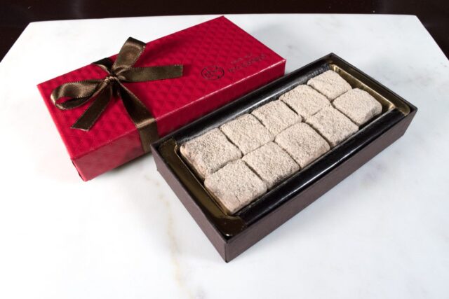 地元のほうじ茶を使用したオリジナル生チョコです。