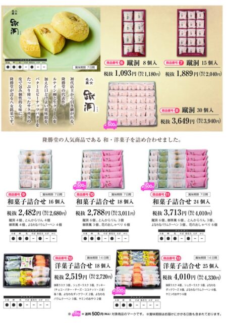 隆勝堂の夏ギフトのラインナップのご案内です。
